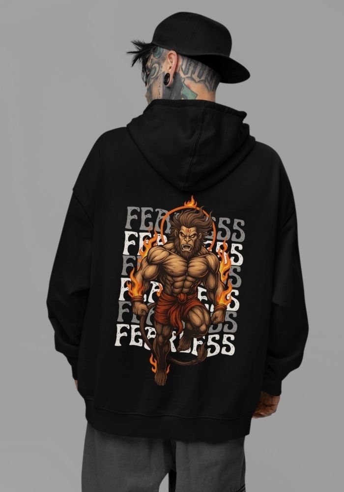 Kalavesh Fearless Hanuman Black Oversized Hoodie