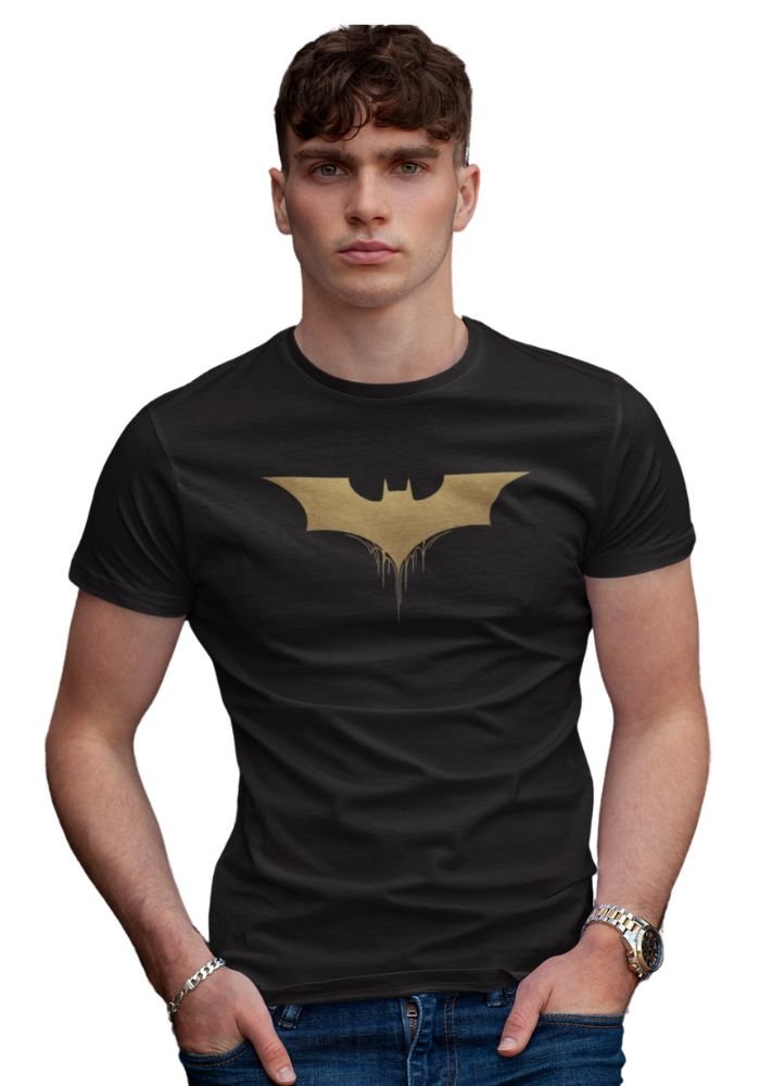 Unleash bold elegance with this Golden Bat on Black T-shirt – a powerful combo of mystery and style. Crafted from 100% pure cotton, this tee guarantees comfort with a luxurious edge. Featuring a premium DTF print, the gold detailing stands out with rich contrast and long-lasting brilliance.
