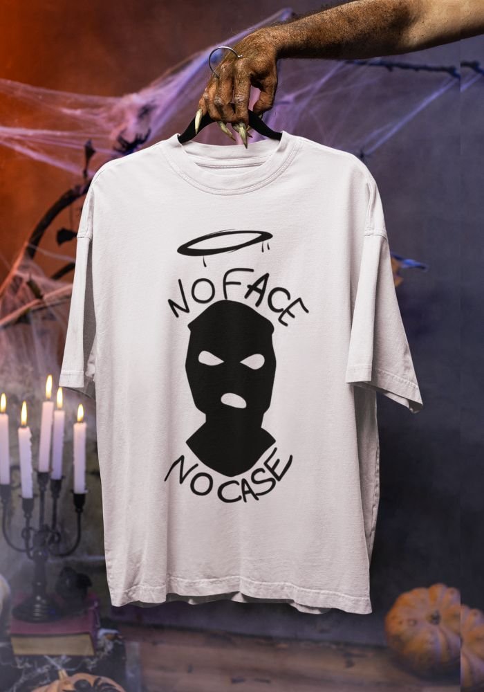 The “No Face No Case” T-shirt by Kalavesh is for the ones who believe in keeping things lowkey and clean — no proof, no drama, no stress. Masked up, chilled out, and not here to explain anything. Just vibes and a whole lot of mystery.