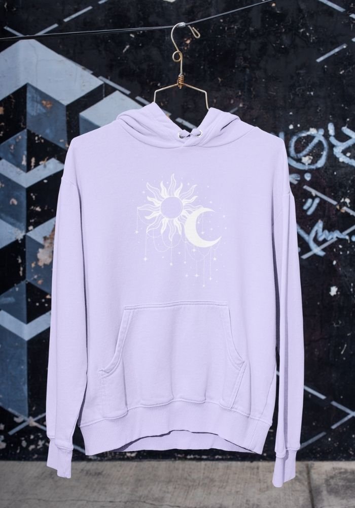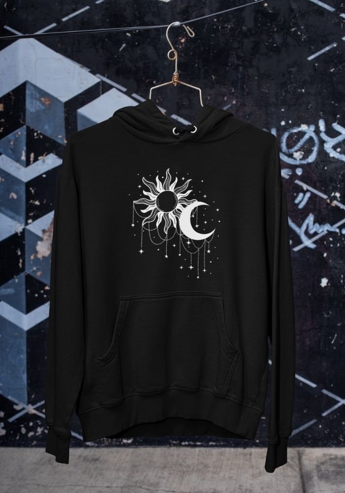 Add a touch of artistry to your wardrobe with the Kalavesh Moon Flower Hoodie, featuring a half moon and floral graphic on the front. This design blends elegance with streetwear, making it perfect for those who love minimal yet expressive fashion.