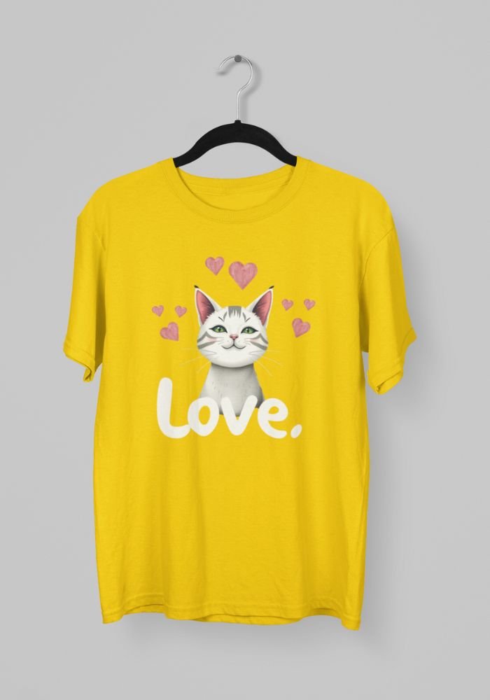 Celebrate your love for cats with the Kalavesh LOVE Cat T-Shirt. Featuring the word LOVE designed beautifully with a cat graphic, this cute cat lover T-shirt is perfect for cat moms, cat dads, and anyone who adores their feline friend. Crafted from premium cotton, this cat print T-shirt is soft, breathable, and stylish for everyday wear. A thoughtful choice as a cat lover gift T-shirt or a cozy addition to your own wardrobe.