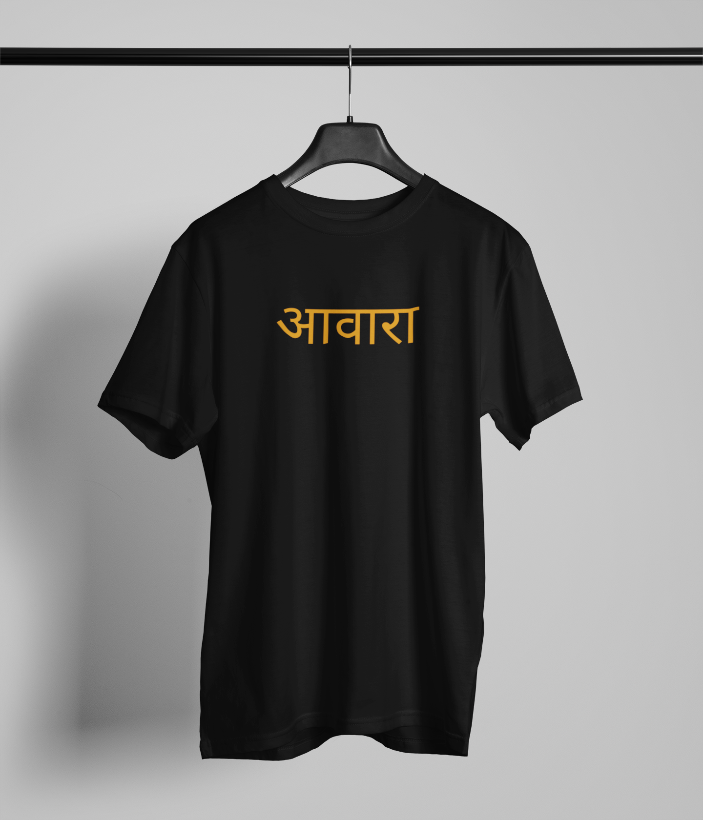Show off your free spirit with the Kalavesh Awara Hindi Text T-Shirt. Featuring the word Awara written in bold Hindi script, this tee is perfect for those who embrace life on their own terms. Whether you’re out with friends, exploring new places, or just chilling, this premium cotton tee offers comfort, breathability, and effortless style. Designed for everyday wear, it’s an ideal pick for casual fashion enthusiasts who like to keep things bold and meaningful.